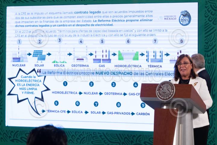 CIUDAD DE MÉXICO, 11OCTUBRE2021.- Andrés Manuel López Obrador, Presidente de México, durante la conferencia matutina en Palacio Nacional, en la cual explicó su proyecto de Reforma Energética. Lo acompañaron Rocío Nahle García, secretaria de Energía; María Estela Ríos González, Consejera Jurídica de la Presidencia; Marcelo Ebrard, secretario de Relaciones Exteriores; Ricardo Sheffield Padilla, director de Profeco; Manuel Bartlett, director de CFE, y Adán Augusto López, secretario de Gobernación. FOTO: MOISÉS PABLO/CUARTOSCURO.COM