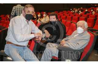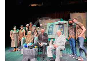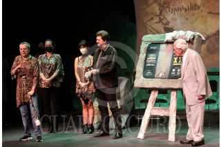CIUDAD DE MÉXICO, 11OCTUBRE2021.- César Bono festejo el 20 aniversario de la obra que ha protagonizado durante décadas de "Defendiendo al Cavernícola", la develación de la placa conmemorativa contó con la presencia de Ignacio López Tarso y su hijo Juan Ignacio Aranda, y se realizó el día de ayer en el Centro Cultural San Ángel. FOTO: MEJOR TEATRO/CUARTOSCURO.COM