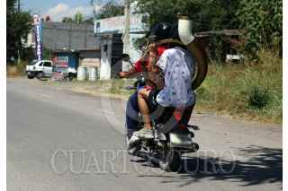 XOXOCOTLA, MORELOS, 11OCTUBRE2021. Un motociclista lleva como pasajero a un joven que carga una tuba sin su característica campana en el municipio indígena de Xoxocotla. FOTO: MARGARITO PÉREZ RETANA / CUARTOSCURO.COM