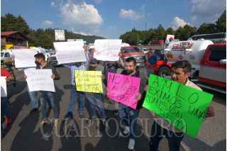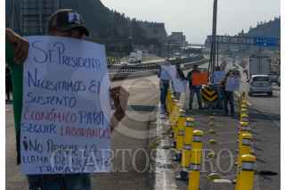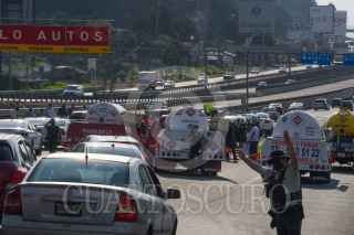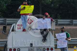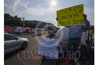OCOYOACAC, ESTADO DE MÉXICO, 11OCTUBRE2021.- Integrantes del Gremio Nacional de Gaseros bloquearon algunos carriles de la carretera México-Toluca como parte del Paro Nacional de Labores y piden ser tomas en cuenta en la regulación del precio del gas LP, ya que con el tope máximo del precio sus ganancias disminuyeron considerablemente. FOTO: CRISANTA ESPINOSA AGUILAR /CUARTOSCURO.COM