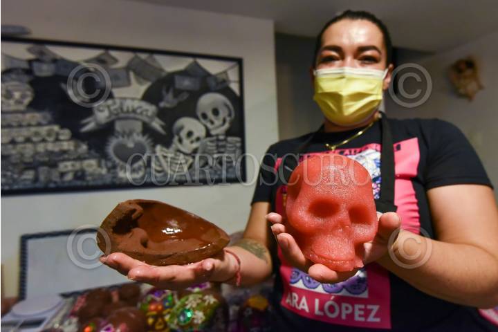 TOLUCA, ESTADO DE MÉXICO, 11OCTUBRE2021.- Después de tanta incertidumbre se anunciaron las fechas para la realización de la Feria del Alfeñique 2021 en Toluca, que se realizará del 15 de octubre al 2 de noviembre, en donde participarán 84 productores de Alfeñique con todas las medidas higiénicas necesarias. Araceli López Fernández integrante de Corazón de Alfeñique junto con su familia quienes llevan 4 generaciones dedicándose a esta tradición han tenido que reducir su trabajo a un 50 por ciento por la pandemia por COVID-19, que a pesar de haberse realizado la feria el año pasado tuvieron que invertir en medidas de protección e higiene así como el número de visitantes disminuyó considerablemente bajando sus ventas, su trabajo inicia generalmente en el mes de mayo por el tema de lluvias y humedad. A pesar de todo esto toda su familia continúa trabajando para preservar esta tradición con la que nacieron y continúan heredando a las nuevas generaciones, no sólo elaborando lo ya tradicional si no también innovando en sus productos, por ello iniciaron sus ventas a través de redes sociales ofreciendo todos y cada uno de los productos que elaboran. FOTO: CRISANTA ESPINOSA AGUILAR /CUARTOSCURO.COM