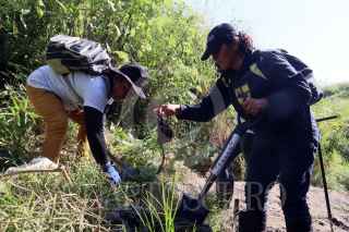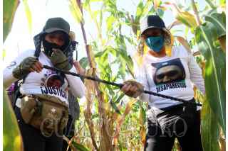 CUAUTLA, MORELOS, 12OCTUBRE2021. Decenas de familiares de personas desaparecidas agrupados en colectivos, acompañados por la Comisión Nacional de Búsqueda, realizan barrido en sembradíos de maíz y sorgo en la localidad de Tetelcingo como parte de la VI Brigada Nacional de Búsqueda. Personal de la Guardia Nacional y efectivos de la Comisión Estatal de Seguridad Publica acompañan a los familiares que con picos, barretas, palas y varillas recorren barrancas y parcelas de labranza en busca de algún indicio. FOTO: MARGARITO PÉREZ RETANA / CUARTOSCURO.COM