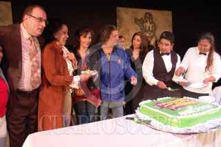 MÉXICO, D.F. 130CTUBRE2006.- Defendiendo al Cavernícola inicia su sexto año en cartelera. Lilia Aragón fue la madrina del pastel de aniversario. Este éxito es producto del trabajo de mucha gente encabezada por Morris Gilbert y Federico González Compeán en la producción y Hector Bonilla en la dirección escènica. FOTO: OCESA/CUARTOSCURO.COM