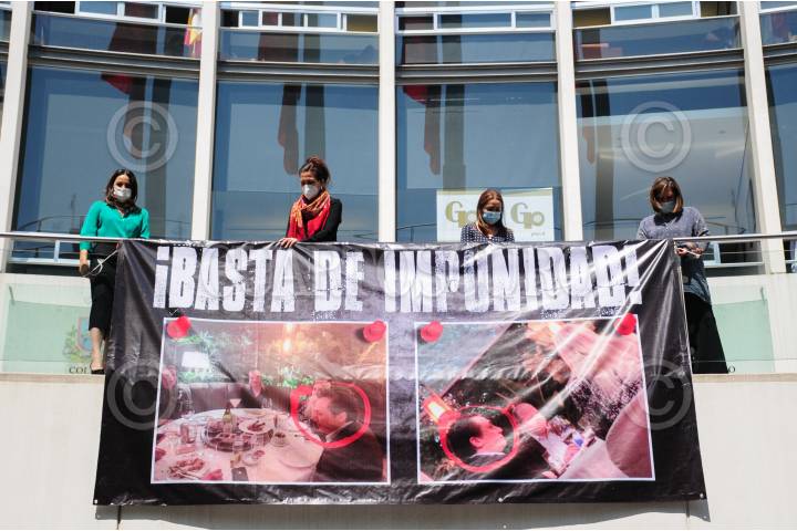 CIUDAD DE MÉXICO, 12OCTUBRE2021.- Las senadoras del PAN, Xochitl Gálvez, Josefina Vázquez Mota y Kenia López Rabadán y la priista, Martha Cecilia Márquez, colocaron una manta en el chacalodromo donde exhibieron las fotografías que fueron difundidas el fin de semana pasado donde se aprecia a Emilio Lozoya dentro de un restaurante mientras cumple un arresto domiciliario. FOTO: DANIEL AUGUSTO /CUARTOSCURO.COM