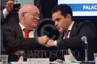 CIUDAD DE MÉXICO, 12OCTUBRE2021.- Los diputados del PRI: Pablo Guillermo Angulo, y Rubén Moreira, junto a David Colmenares Páramo Auditor Superior de la Federación y David Villanueva Lomeli , titular de la Unidad de Evaluación y Control, presidieron la reunión de instalación de la Comisión de Vigilancia de la Auditoria Superior de Federación. FOTO: MARIO JASSO/CUARTOSCURO.COM