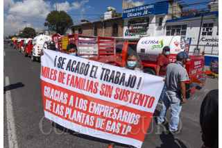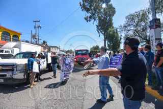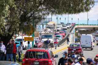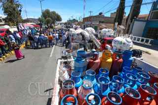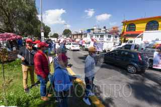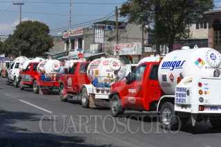 ZINACANTEPEC, ESTADO DE MÉXICO, 12OCTUBRE2021.- Por segundo día gaseros del Valle de Toluca bloquearon la vialidad Adolfo López Mateos en la comunidad de San Luis Mextepec, por segundo día consecutivo como parte de su paro de labores exigiendo ser tomados en la regulación del precio máximo del gas LP. FOTO: CRISANTA ESPINOSA AGUILAR /CUARTOSCURO.COM