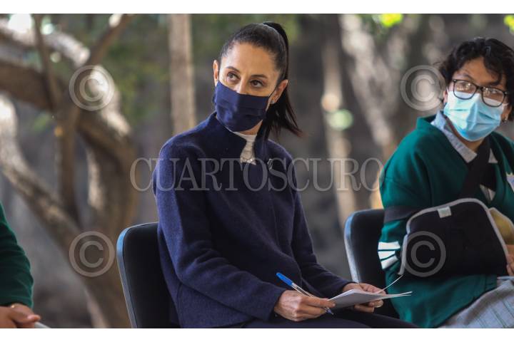 CIUDAD DE MÉXICO, 12OCTUBRE2021.- La jefa del Gobierno de la Ciudad, Caludia Sheinbaum Pardo, entrego tarjetas del Programa Mi Beca para Empezar, esta tarde en la escuela secundaria Pública "Amado Nervo", que pertenece a la alcaldía de Azcapotzalco. FOTO; VICTORIA VALTIERRA/CUARTOSCURO.COM