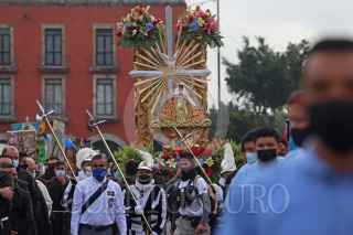 ZAPOPAN, JALISCO, 12OCTUBRE2021.- Hoy y como cada año se llevo a cabo la tradicional Romería 2021 en su edición 287, pero esta vez apegándose a la nueva normalidad por la Pandemia del Covid-19, ya que este año no acudieron las multitudes de personas para evitar la propagación del virus, dicho recorrido dio inicio en la Catedral Metropolitana de Guadalajara y concluyo en la Basílica de Zapopan, hogar donde habita la Generala. FOTO: FERNANDO CARRANZA GARCIA / CUARTOSCURO.COM