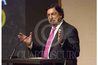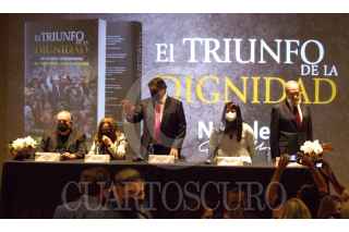 MONTERREY, NUEVO LEÓN 12OCTUBRE2021.- El senador de la república Napoleón Gómez Urrutia, presentó el libro "El triunfo de la dignidad", el cuál refiere a experiencias como el exilio y la lucha. Los periodista San Juana Martínez y Ramón Alberto Garza, así como la senadora Indira Kempins fueron los encargados de realizar la presentación en el Auditorio del Museo de Artes Contemporáneo. FOTO: GABRIELA PÉREZ MONTIEL / CUARTOSCURO.COM