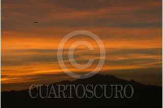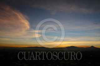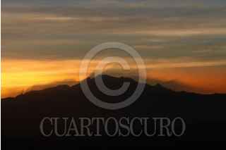 CIUDAD DE MÉXICO, 13OCTUBRE2021.- Ente tonalidades rojas, naranjas y custodiada por los volcanes Iztaccíhuatl y Popocatépetl, amanece en la ciudad. FOTO: ROGELIO MORALES /CUARTOSCURO.COM
