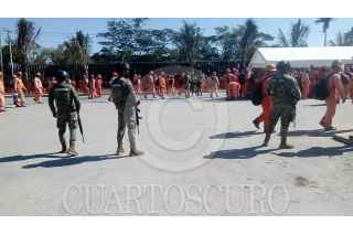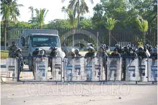 PARAÍSO, TABASCO, 13OCTUBRE2021.- Un enfrentamiento se registró entre autoridades policíacas contra un nutrido grupo de manifestantes de la empresa ICA Flour que mantenían bloqueada el acceso uno del complejo Dos Bocas. Los inconformes dieron a conocer que lo anterior debido a que no les pagan y malas condiciones laborales. De la misma manera informan de varios lesionados y de un muerto por disparos con gases lacrimogenos. FOTO: CARLOS CABAL OBRADOR/CUARTOSCURO.COM