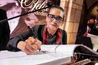 SAN LUIS POTOSI, S.L.P. 14OCTUBRE2021.- La actriz y activista Ofelia Medina, recibió un reconocimiento a su trayectoria artística por parte de la Universidad Autónoma de San Luis Potosí; dentro del Cuarto Festival de Cine que se desarrolla en la capital potosina del 8 al 14 de octubre en donde se exhiben películas, hay talleres, charlas, master class y conversatorios con directores y artistas. FOTO: MARCELO PALACIOS /CUARTOSCURO.COM