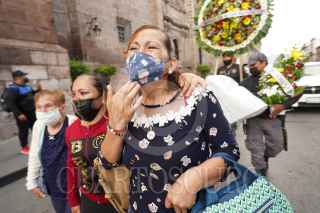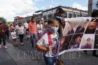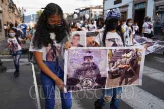 MORELIA, MICHOACÁN, 14OCTUBRE2021.- La tarde de este jueves, amigos y familiares de los policías que perdieron la vida al ser emboscados hace dos años en el municipio de Aguililla, marcharon por la avenida Madero a manera de homenaje. Las personas que portaban globos y playeras blancas, así como fotografías de los agentes y ramos de flores, partieron de Las Tarascas y llegaron a la Catedral de Morelia, fue el 14 de octubre de 2019 cuando 42 oficiales partieron de Apatzingán con rumbo a Aguililla, sin embargo, en la comunidad de El Aguaje fueron atacados con armas de grueso calibre e incluso con fusiles Barret calibre .50 milímetros. Los agentes intentaron repeler la agresión, sin embargo 13 de ellos perdieron la vida. Hoy los recordaron y exigieron justicia. FOTO: JUAN JOSÉ ESTRADA SERAFÍN/CUARTOSCURO.COM