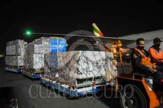 CIUDAD DE MÉXICO, 15OCTUBRE2021.- Esta madrugada arribaron a l Aeropuerto Internacional de la Ciudad de México, vaunas Sputnik V, ya que el se sigue con la campaña de vacunación en todo el pais. FOTO: SECRETARIA DE ESTADO/CUARTOSCURO.COM