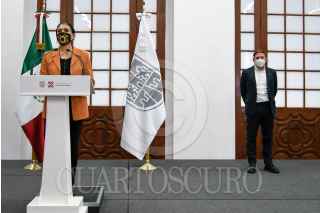 CIUDAD DE MÉXICO, 15OCTUBRE2021.- Oliva López Arellano y Edurado Clark García, en conferencia de prensa, anunciaron el pase de semáforo amarillo a verde en la capital Mexicana, esto en el Palacio del Ayuntamiento Capitalino. FOTO: GOBIERNO DE LA CIUDAD/CUARTOSCURO.COM