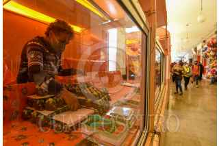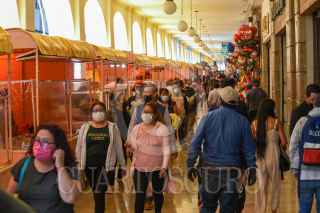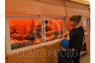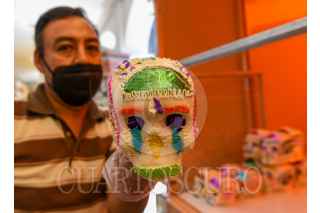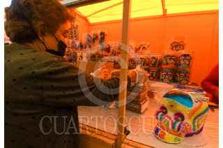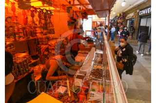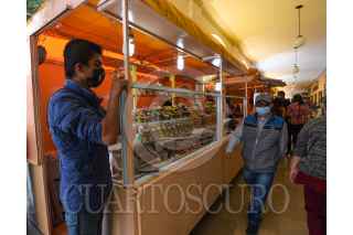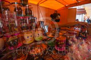TOLUCA, ESTADO DE MÉXICO, 15OCTUBRE2021.- Da inició la tradicional Feria del Alfeñique, los artesanos a muy temprana hora comenzaron a instalarse en sus puestos los cuales tienen acrílicos o vidrios para proteger la mercancía, la cual va también en bolsitas, fue instalado gel antibacterial esto como medidas ante la pandemia por COVID-19, a pesar de que durará menos de lo habitual esta feria, los artesanos esperan muchos visitantes y que adquieran sus dulces tradicionales, alfeñique, calaveras de azúcar y chocolate entre otras. Su producción al igual que el año pasado es a un 50 por ciento de lo que normalmente producen ante la incertidumbre si se llevaría a cabo esta feria. FOTO: CRISANTA ESPINOSA AGUILAR /CUARTOSCURO.COM