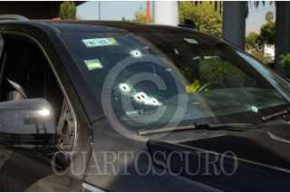 CIUDAD DE MÉXICO. 15OCTUBRE2021.- Tras balacera en el circuito interior casi con oceania cuatro sujetos en dos motos balean camioneta de un empresario restaurantero de Cancún, acudieron hasta la terminal 2 para pedir apoyo la cual se llevo una de las motos arrastrando hasta el aeropuerto. Uno de los delincuentes falleció. Más tarde en el hospital ya que fue baleado y arrastrado por la camioneta. FOTO: ARMANDO MONROY/CUARTOSCURO.COM