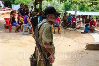 CACAHUATEPEC, GUERRERO, 15OCTUBRE2021.- Un reducido grupo de policías comunitarios resguardan a la población de los Bienes Comunales de Cacahuatepec ubicada en la zona rural de Acapulco, la cual se encuentra asediada constantemente por integrantes del crimen organizado y empresarios. Dichos grupos están interesados por tener el control de los recursos naturales del lugar, en dónde abunda el agua, grava y arena del río Papagayo, de igual manera hay presencia de oro y litio. FOTO: CARLOS ALBERTO CARBAJAL/CUARTOSCURO.COM