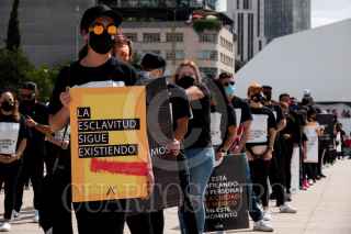 CIUDAD DE MÉXICO, 16OCTUBRE2021.- Integrantes de la Asociación Civil A21 participaron en la camina “WalkForFreedom” que partió del Monumento a la Revolución hacia el Ángel de la Independencia para protestar contra la trata de personas. Acompañados de pancartas y playeras con la leyenda “Aboliendo la esclavitud con cada paso” las y los participantes marcharon en silencio sobre Paseo de la Reforma. FOTO: GALO CAÑAS/CUARTOSCURO.COM