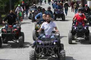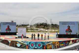 CIUDAD DE MÉXICO, 16OCTUBRE2021.- Claudia Sheinbaum, jefa de gobierno, Clara Brugada, alcalde de Iztapalapa, Martí Batres, secretario de gobierno, Marina Robles, titular de la Secretaría del Medio Ambiente y Javier Hidalgo, titular del Instituto del Deporte, encabezaron la cuarta entrega de trabajos en el Parque Cuitláhuac. FOTO: ROGELIO MORALES /CUARTOSCURO.COM