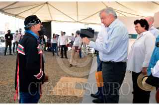 SAN QUINTÍN, BAJA CALIFORNIA, 16OCTUBRE2021.- Andrés Manuel López Obrador, presidente de México, encabezó la entrega de la Universidad para el Bienestar ‘Benito Juárez García’, con sede San Quintín en San Quintín, Baja California. El mandatario estuvo acompañado por: Zolia Teresita de Jesús Alcaraz, Coordinadora académica de la Universidad para el Bienestar ‘Benito Juárez García’, sede San Quintín, Baja California; Carlos Torres Rosas, Coordinador General de Programas Integrales para el Bienestar; Jaime Bonilla Valdez, Gobernador de Baja California; Raquel Sosa Elízaga, Directora General del Organismo Coordinador de las Universidades para el Bienestar “Benito Juárez García”; Marina del Pilar Ávila Olmeda, Gobernadora Electa del Estado de Baja California; Jorge Alberto López, Presidente del Consejo Municipal Fundacional de San Quintín, Baja California. FOTO: PRESIDENCIA/CUARTOSCURO.COM