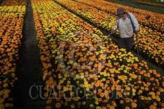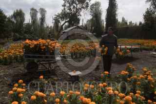 CIUDAD DE MÉXICO, 17OCTUBRE2021.- Productores de la flor de cempasúchil comenzaron con la venta de la flor en el Mercado de San Luis Tlaxialtemalco, en la alcaldía Xochimilco. La siembra de esta flor dura aproximadamente tres meses y se vende de 10 a 15 pesos por maceta dependiendo de la calidad, ya sea por menudeo o mayoreo para la Central de Abastos y los estados de Puebla, Tlaxcala, Hidalgo y Estado de México. La siembra del cempasúchil en el vivero de San Luis Tlaxialemalco es por maceta porque no hay condiciones de tierra ni clima para que sea una siembra por corte. Después de su uso se recomienda deshidratarla y utilizarla como composta, como pigmento o para preparar bebidas o alimentos. FOTO: GRACIELA LÓPEZ /CUARTOSCURO.COM