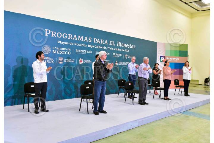 ROSARITO, BAJA CALIFORNIA, 17OCTUBRE2021.- Andrés Manuel López Obrador, Presidente de México encabeza Programas para el Bienestar en el Centro Estatal de las Artes (Ceart) "Playas de Rosarito". Lo acompañan: Jaime Bonilla Valdez, Gobernador del Estado de Baja California; Marina del Pilar Ávila Olmeda, Gobernadora Electa del Estado de Baja California; Ariadna Montiel Reyes, Subsecretaria de Bienestar; Carlos Torres Rosas, Coordinador General de Programas Integrales para el Bienestar; Marath Baruch Bolaños López, Subsecretario de Empleo y Productividad Laboral de la Secretaría del Trabajo y Previsión Social; Abraham Vázquez Piceno, Coordinador Nacional del Programa de Becas para el Bienestar “Benito Juárez”; Pamela López Ruiz, Directora General del Programa “La Escuela es Nuestra” e Hilda Araceli Brown Figueredo, Presidenta Municipal de Playas de Rosarito, Baja California. FOTO: PRESIDENCIA/CUARTOSCURO.COM