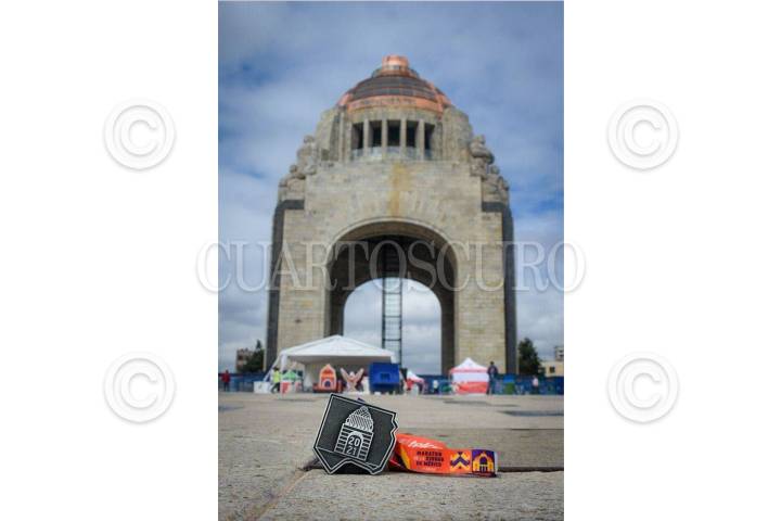 CIUDAD DE MÉXICO, 17OCTUBRE2021.- Autoridades del Indeporte y del gobierno capitalino presentó la playera y la medalla oficial del XXXVIII Maratón de la Ciudad de México Telcel 2021 el cual se realizará el 28 de noviembre, en el Monumento a la Revolución. FOTO: INDEPORTE/CUARTOSCURO.COM