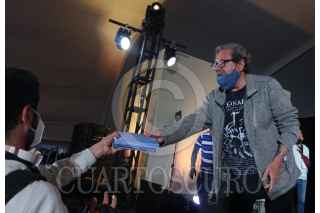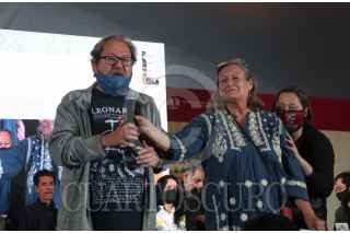 CIUDAD DE MÉXICO, 17OCTUBRE2021. - Paco Ignacio Taibo II, director del fondo de Cultura Económica (FCE) y Paloma Sainz Tejero, encabezaron la clausura de la XXI Feria Internacional del Libro en el Zócalo. FOTO: ANDREA MURCIA /CUARTOSCURO.COM