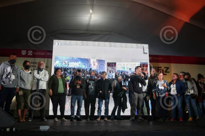 CIUDAD DE MÉXICO, 17OCTUBRE2021. - Paco Ignacio Taibo II, director del fondo de Cultura Económica (FCE) y Paloma Sainz Tejero, encabezaron la clausura de la XXI Feria Internacional del Libro en el Zócalo. FOTO: ANDREA MURCIA /CUARTOSCURO.COM