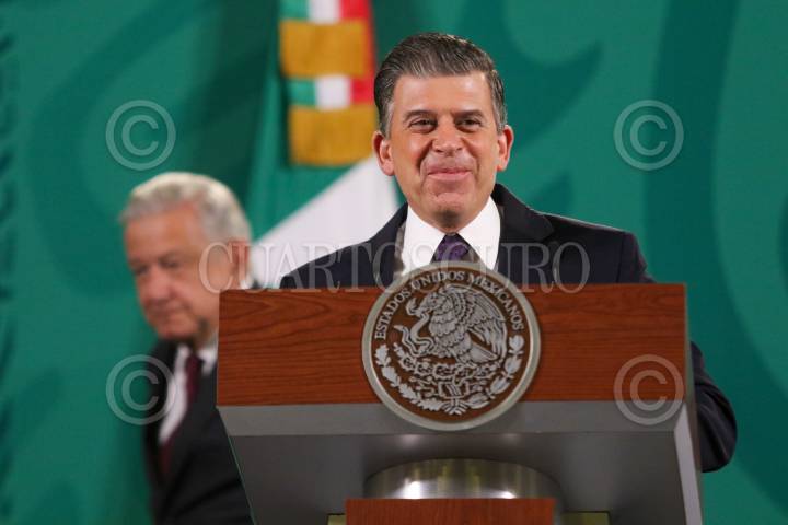 CIUDAD DE MÉXICO, 18OCTUBRE2021.- Andrés Manuel López Obrador, Presidente de México, encabezó la conferencia mañanera en Palacio Nacional, en la cual habló sobre figuras políticas como el ex Presidente, Ernesto Zedillo, y el ex candidato presidencial, Diego Fernández de Cevallos. Lo acompañaron Ricardo Sheffield Padilla, director de Profeco, que presentó el ¿Quién es quién? en las gasolinas y gas LP, y Román Meyer Falcón, titular de la Sedatu, el mostró varias obras de mejoramiento urbano que se han hecho en ciudades, como en Tijuana y Ecatepec para beneficio de la sociedad. FOTO: MOISÉS PABLO/CUARTOSCURO.COM