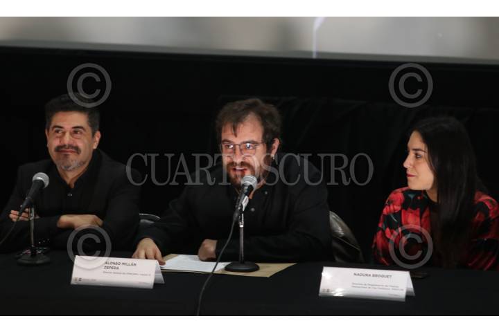 CIUDAD DE MÉXICO, 18OCTUBRE2021.- Gerardo Oñate, guionista y actor de cortometraje Tekenchu; María Olimpia Velasco Mora, directora de Radio y Televisión SPRCDMX Capital 21; Miguel Ángel Marín Colín, director general del Festival Internacional Fantástico FERATUM; Alonso Milán Zepeda, director general de Radio y Televisión SPRCDMX Capital 21; Naoura Broquet, directora de programación del FERATUM y José Gabriel Acosta Flores, durante la presentación del Festival Internacional Fantástico FERATUM que se llevara a cabo en la Cineteca Nacional del 18 al 25 de noviembre. FOTO: ANDREA MURCIA /CUARTOSCURO.COM