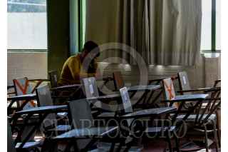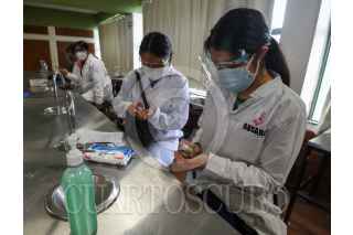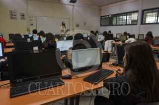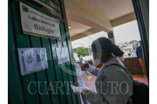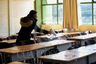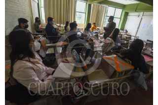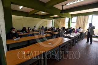 TOLUCA, ESTADO DE MÉXICO, 18OCTUBRE2021.- Estudiantes del Plantel Lic. Adolfo López Mateos de la Escuela Preparatoria UAEM regresaron a clases presenciales, de una matrícula de 3589 alumnos y 273 profesores, que estuvieron tomando clases a distancia debido a la pandemia por COVID-19, las autoridades del plantel realizaron un calendario y dividieron los grupos en dos para tener un aforo del 50 por ciento y que se presenten dos veces a la semana, algunos siguen trabajando desde casa; los jóvenes regresaron con entusiasmo a las aulas y hoy se presentaron alrededor de 200 estudiantes quienes al igual que los profesores deben de guardar todas las medidas higiénicas desde llevar cubrebocas todo el tiempo, utilizar gel antibacterial, algunos llevan careta, antes de entrar a cada aula esta es sanitizada al igual que ellos, y deben de leer un código QR con los cuales se identifican al ingreso y salida de cada espacio académico y poder llevar un control por si se llegara a tener algún contagio. FOTO: CRISANTA ESPINOSA AGUILAR /CUARTOSCURO.COM