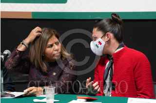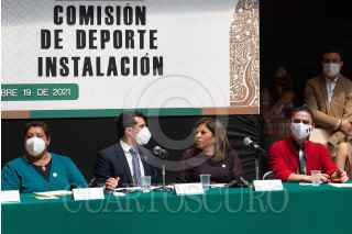 CIUDAD DE MÉXICO, 19OCTUBRE2021.- Rommel Pacheco, diputado del PAN; María José Alcalá, diputada del PVEM, y Ana Gabriela Guevara, directora general de la CONADE, encabezaron la instalación de la comisión de Deporte de la Cámara de Diputados. FOTO: MARIO JASSO/CUARTOSCURO.COM
