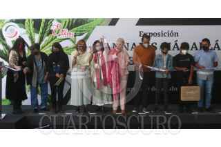 CIUDAD DE MÉXICO, 19OCTUBRE2021.- Olga Sánchez Cordero, presidenta de la Mesa directiva en el Senado de la República, y las senadoras Malu Michell y Susana Harp encabezaron la inauguración de la exposición "Cannabis Más Allá", realizada en el Patio del Federalismo. FOTO: GRACIELA LÓPEZ /CUARTOSCURO.COM
