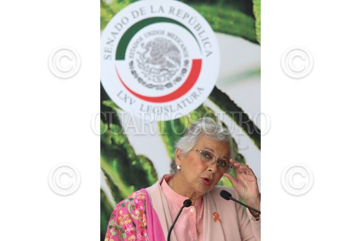 CIUDAD DE MÉXICO, 19OCTUBRE2021.- Olga Sánchez Cordero, presidenta de la Mesa directiva en el Senado de la República, y las senadoras Malu Michell y Susana Harp encabezaron la inauguración de la exposición "Cannabis Más Allá", realizada en el Patio del Federalismo. FOTO: GRACIELA LÓPEZ /CUARTOSCURO.COM