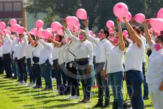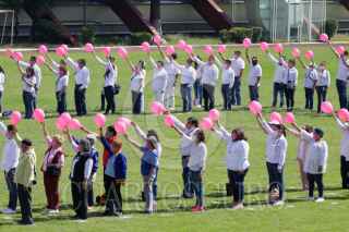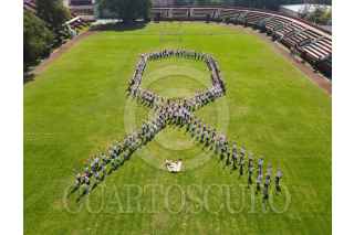 CIUDAD DE MÉXICO, 19OCTUBRE2021.- Para crear conciencia sobre la detección temprana del cáncer de mama, más de 300 voluntarios, médicos, enfermeras y profesionales de la salud del Instituto Mexicano del Seguro Social (IMSS) conformaron el lazo solidario rosa en la cancha de futbol de la Unidad Deportiva Morelos, de la Alcaldía Gustavo A. Madero. Con este lazo humano los trabajadores del Seguro Social se unieron a las estrategias de sensibilización sobre la lucha contra el cáncer de mama e hicieron un llamado a las derechohabientes a acudir a los servicios preventivos para detectar esta enfermedad, que es la primera causa de muerte entre las mujeres de México. Esta acción forma parte de la campaña institucional por el Día Mundial de la Lucha Contra el Cáncer de Mama, para llevar un mensaje de prevención y toma de conciencia a fin de reducir la mortalidad por esta enfermedad. FOTO: IMSS/CUARTOSCURO.COM