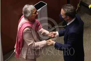 CIUDAD DE MÉXICO, 19OCTUBRE2021.- Se llevó a cabo la Sesión Ordinaria en el pleno del Senado de la República, en la que se realizó un minuto de silencio por las mujeres fallecidas a causa del cáncer de mama y por Celeste Batel, esposa de Lázaro Cárdenas, quién falleció esta tarde. FOTO: GRACIELA LÓPEZ /CUARTOSCURO.COM