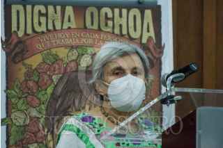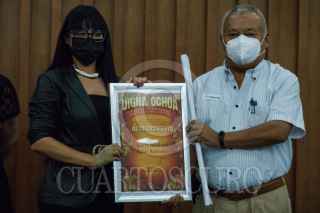 CIUDAD DE MÉXICO, 19OCTUBRE2021.- La Comisión de Derechos Humanos de la Ciudad de México entregó el premio Digna Ocho, reconocimiento que rememora la lucha de la abogada mexicana asesinada en 2001, fue entregado en la sede de la Comisión a diversas personalidades destacadas en la lucha por los derechos humanos. Entre los galardonados y galardonadas se encuentra: la periodista Blanche Petrich; el recién fallecido cineasta Felipe Cazals; Karla Micheel Salas, abogada feminista y fundadora de la organización DIRKAM, así como la actriz Alma Vanessa Bauche Chavira, por mencionar algunos. FOTO: GALO CAÑAS/CUARTOSCURO.COM