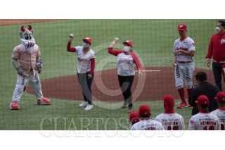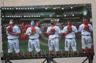 CIUDAD DE MÉXICO. 19OCTUBRE2021.- Partido de inicio en la temporada de Beisbol, entre los Diablos de México ante el Veracruz, en el Estadio Alfredo Harp Helu. El partido inicio con la presencia de dos mujeres sobrevivientes de cáncer. FOTO: VICTORIA VALTIERRA/CUARTOSCURO.COM
