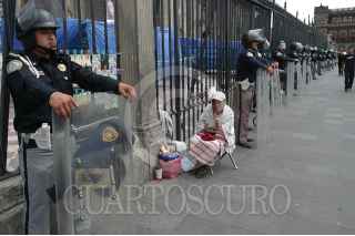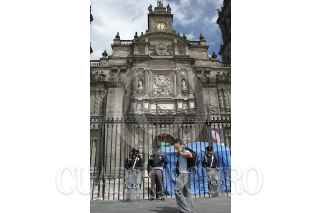 MÉXICO D.F. 15OCTUBRE2006.- Elementos de la secretaria de seguridad del D. F. reguardan la Catedral Metropolitana en un operativo especial. FOTO: GUILLERMO PEREA/CUARTOSCURO.COM