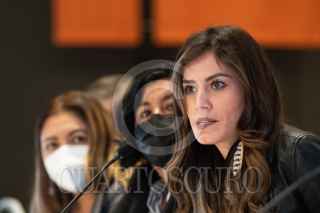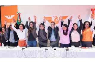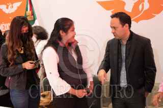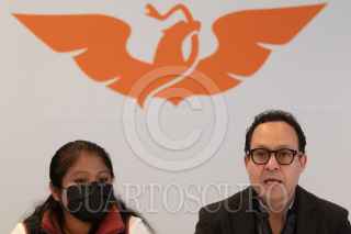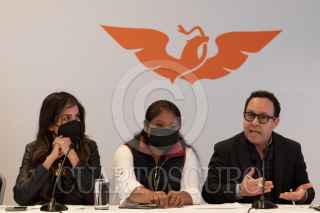 CIUDAD DE MÉXICO, 20OCTUBRE2021.- Ruperta Nicolás Hilario integrante de Movimiento Ciudadano que contendió a la presidencia municipal de Iliatenco, Guerrero, ofreció una conferencia de prensa acompañada de Clemente Castañeda, coordinador nacional de Movimiento Ciudadano. La elección en este municipio fue anulada por el Tribunal Electoral del Poder Judicial de la Federación por violencia política de genero, ya que el día de la elección hubo pintas en 14 bardas cercanas a las casillas con mensajes misóginos en contra de Ruperta, quien buscaba la reelección a su cargo. Nicolás Hilario señaló que a pesar del ambiente de violencia que ha vivido volverá a competir en la elección que se realizará el próximo 28 de noviembre, diputadas de su partido han llamado al gobierno de Guerrero y a la Comisión Nacional para Prevenir y Erradicar la Violencia contra las y Mujeres (Conavim) a emitir medidas de protección para proteger su integridad física y derechos políticos. La acompañaron sus compañeras legislativas, como la senadora Verónica Delgadillo. FOTO: MOISÉS PABLO/CUARTOSCURO.COM