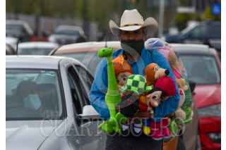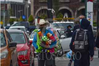 TOLUCA, ESTADO DE MÉXICO, 20OCTUBRE2021.- Una persona de la tercera edad recorre las calles de Toluca ofreciendo muñecos de peluche de diversos personajes, en busca del sustento diario. FOTO: CRISANTA ESPINOSA AGUILAR /CUARTOSCURO.COM