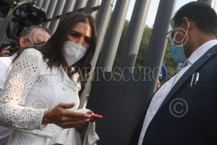 CIUDAD DE MÉXICO, 20OCTUBRE2021.- Rosario Robles, ex titular de Sedesol y SEDATU, escoltada por elementos de la policía se presentó esta tarde a la primera Audiencia en el Reclusorio Sur. La acompañaron su abogado Epigmenio Mendieta y su hija Mariana Moguel. FOTO: GRACIELA LÓPEZ / CUARTOSCURO.COM