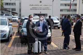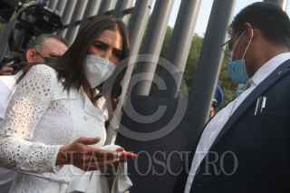 CIUDAD DE MÉXICO, 20OCTUBRE2021.- Rosario Robles, ex titular de Sedesol y SEDATU, escoltada por elementos de la policía se presentó esta tarde a la primera Audiencia en el Reclusorio Sur. La acompañaron su abogado Epigmenio Mendieta y su hija Mariana Moguel. FOTO: GRACIELA LÓPEZ / CUARTOSCURO.COM