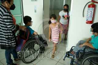TUXTLA, GUTIÉRREZ, CHIAPAS, 20OCTUBRE2021.- De Cintalapa y otros municipios cercanos, niños y niñas con comorbilidades acompañados de sus padres acudieron esta mañana a la aplicación de la vacuna contra el COVID-19, en el Hospital de Especialidades Pediátricas. En dicha institución desde el lunes pasado se aplica la vacuna Pfizer a menores de 12 a 17 años. FOTO: ISABEL MATEOS/CUARTOSCURO.COM