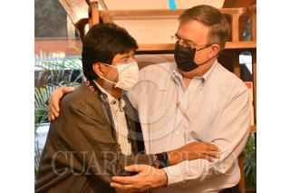 CIUDAD DE MÉXICO, 20OCTUBRE2021. - Evo Morales, ex presidente de Bolivia llego a México, fue recibido por Marcelo Ebrard, secretario de Relaciones Exteriores. Morales anuncio previamente que vendría a México para un foro del Partido del Trabajo. FOTO: ESPECIAL /CUARTOSCURO.COM