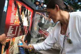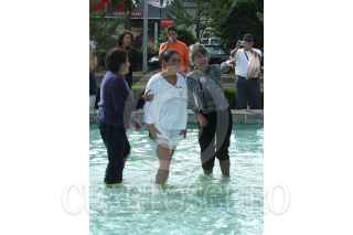 MÉXICO D.F. 15OCTUBRE2006.- Jesusa Rodriguez integrante de la Resistencia Civil Pacifica se metió a una fuente a refrescarse junto algunos seguidores de Andres Manuel López Obrador despues de un mitin realizado afuera de la casa transicion del presidente electo Felipe Calderon. FOTO: SAUL LOPEZ ESCORCIA/CUARTOSCURO.COM