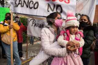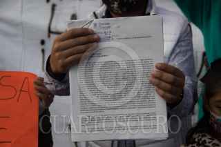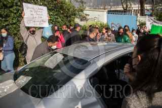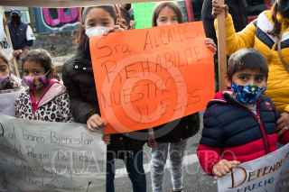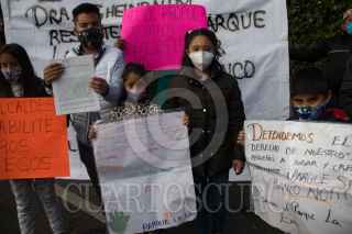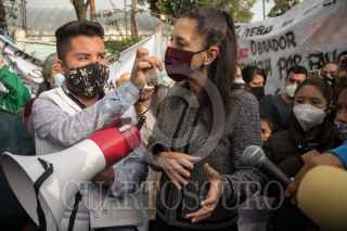 CIUDAD DE MÉXICO. 21OCTUBRE2021.- Pobladores de Lomas de la Era, en la alcaldía Álvaro Obregón, lidereados por Alexis Díaz, se man ifestaron en las afueras de la Escuela Primaria, Zinbawe", y al termino del evento de la jefa del Gobierno Claudia Sheinbaum Pardo, hablo con ellos. FOTO: VICTORIA VALTIERRA/CUARTOSCURO.COM