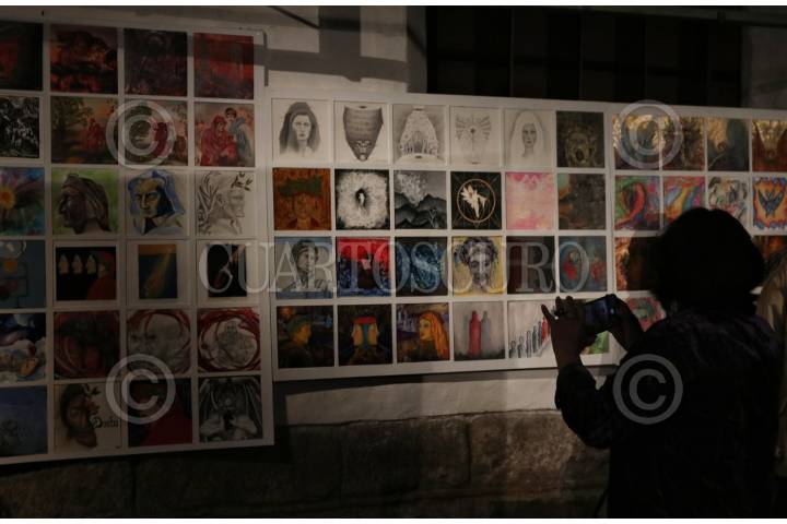 CIUDAD DE MÉXICO, 21OCTUBRE2021. - Como parte de la conmemoración de los 700 años del fallecimiento de Dante Alihieri, se inauguró la exposición conformada por 700 obras de 140 artistas mexicanos y curada por Fernando Aroche Bello. La muestra estara abierta al público a partir de mañana 22 de octubre en el Claustro de Sor Juana ubicado en el corazón del Centro Histórico y permanecera 3 semanas antes de partir a Italia. FOTO: ANDREA MURCIA /CUARTOSCURO.COM